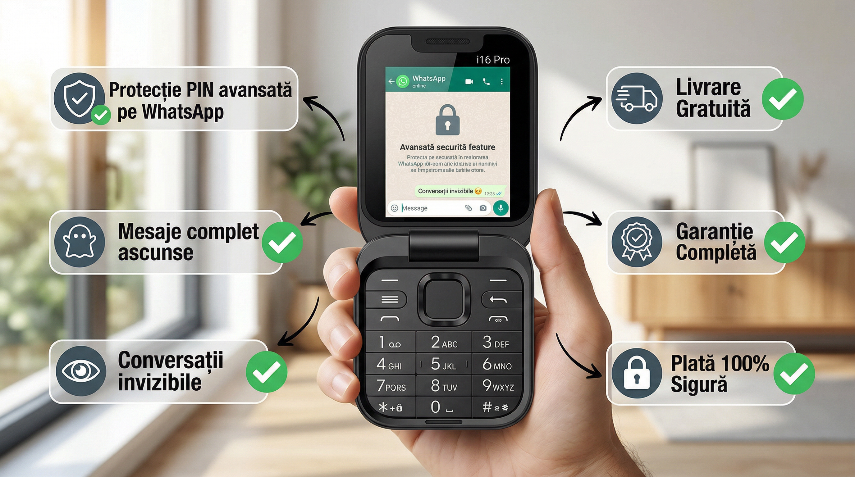 | Protecție WhatsApp | ✓ PIN Advanced | ✗ Zero protecție |