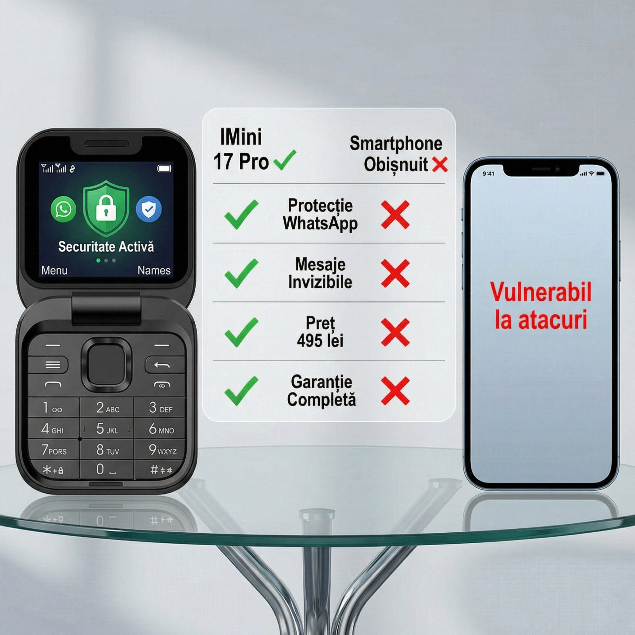 IMini 17 Pro se concentrează pe protecția intimității, nu pe funcții inutile. Nu plătești pentru cameră de 100MP sau procesor de gaming. Plătești pentru cea mai avansată protecție a vieții private la un preț accesibil.